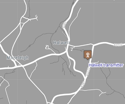 Below is a map showing signal coverage from the Halwell transmitter. The darker green the colour the lower the signal.