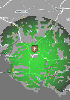 Below is a map showing signal coverage from the Dartmouth transmitter. The darker green the colour the lower the signal.